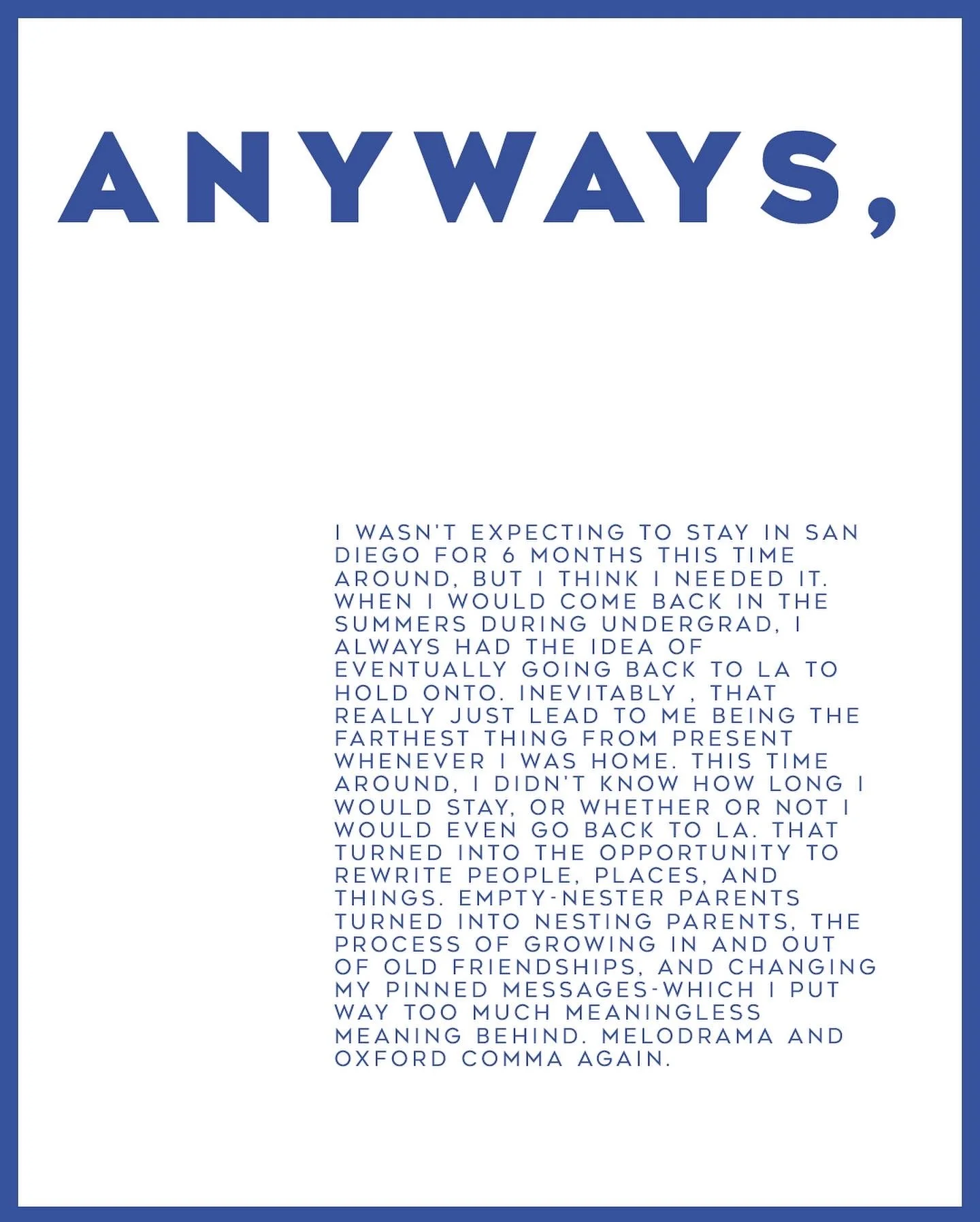 Writing has always been a creative outlet I come back to. It gives me space to put ideas into words, experiment with language, and capture thoughts that might otherwise slip by. I often mix writing with graphic work, pairing words with visuals in a way that makes each stronger. That combination gives me another layer of expression, where language and design elevate each other and open up new ways to tell a story.